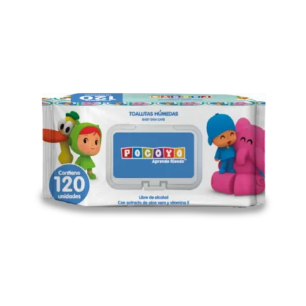 TOALLITAS HÚMEDAS CON EXTRACTO DE ALOE Y VITAMINA E POCOYO 120UND