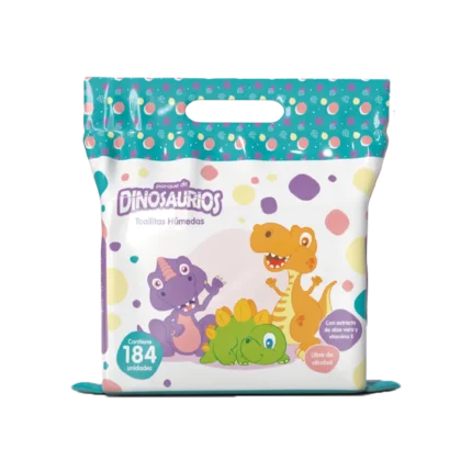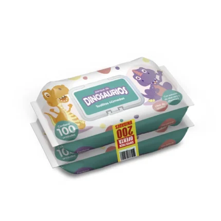 TOALLITAS HÚMEDAS CON EXTRACTO DE ALOE Y VITAMINA E DINOSAURIOS 2PAQX100UND