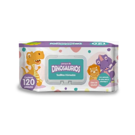 TOALLITAS HÚMEDAS CON EXTRACTO DE ALOE Y VITAMINA E DINOSAURIOS 120UND