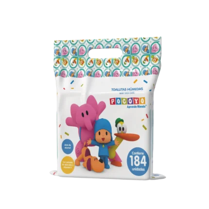 TOALLITAS HÚMEDAS CON EXTRACTO DE ALOE Y VITAMINA E POCOYO 184UND